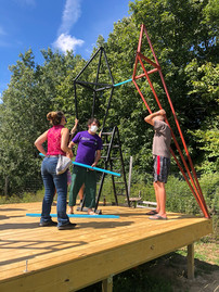 In the fall of 2020 Beyond artists slowly come out of covid hibernation. Some burner friends ask for our help creating art for a regional burn to be held at a secret location in Enfield. When we go to tour the property the owner says that she doesn't want to charge us rent for the four-day event; instead she asks us to build a temple on a sacred hill on her property. Usually the temples for burning man events are made out of wood so that they can be torched at the end of the event. In this case, however, I design a permanent temple made out of four 14-foot tall steel tetrahedral legs. (We are limited to 14 feet because that is the length of the trailer we will use to transport the temple parts.) I weld up the temple parts at the Ithaca Generator around the same time that Generator members are heroically 3D printing face masks for medical professionals (see my previous post Covid Heroes.)