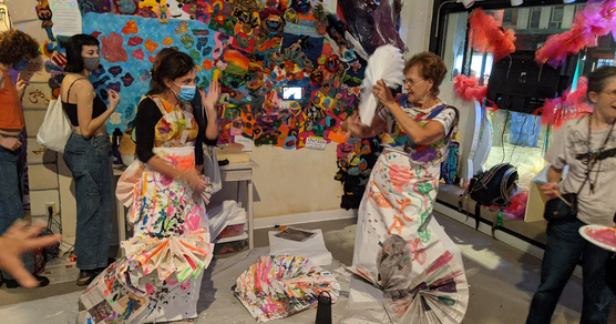 "This was our first interactive immersive popup space! The Beyond Art Lounge, located at (171 E. State St.) on the Commons in the heart of downtown Ithaca, NY, ran from August to October 2021. Collaborators on this project included our lead artists Laurence Clarkberg and Doug Shire, and the Beyond team: Angelina Blasich, Tony Bond, Allen Cosgrove, Tico Chango, John Fuchs, Lily Gershon, Karl Gesslein, Caleb Harrington, Kaylyn Kilkuskie, Savan Karamardian-DeSouza, Wendy Marvel, Cai Quirk, Elsa Quirk, Victor Rakovich, Mark Rosen, Liz Sciore-Jones, Norm Scott, Phoebe Shalloway, Judy Swann, Damaris Vasquez, John Walsh, Will Weave, and Annemarie Zwack."